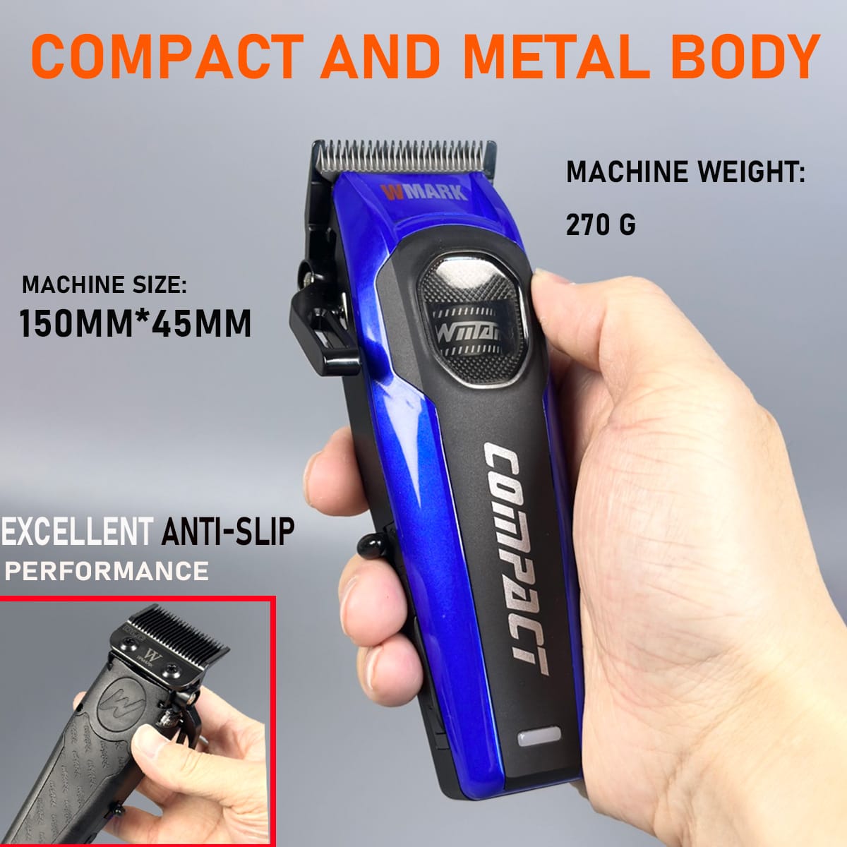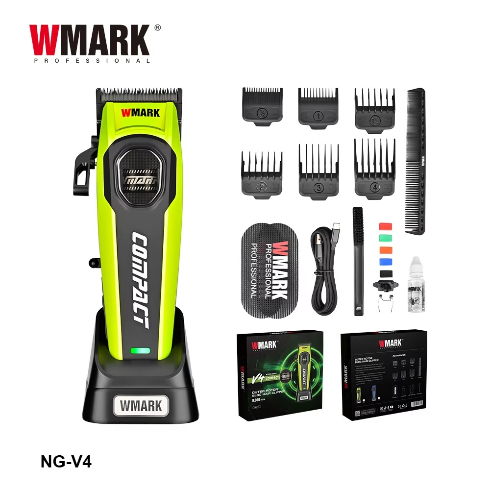 WMARK NG-V4 este o mașină de tuns profesională compactă, concepută pentru precizie, control și utilizare intensivă în barber shop. Datorită motorului brushless, lamei DLC și autonomiei extinse, acest model oferă o experiență de tuns fluidă, fără smulgere și cu rezultate uniforme.